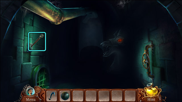 - Pull the rope that fell out of the mouth of the strange sculpture.
