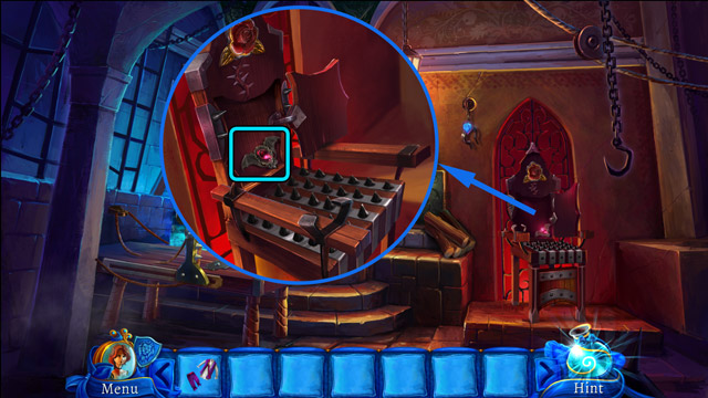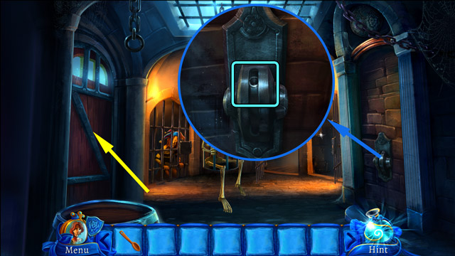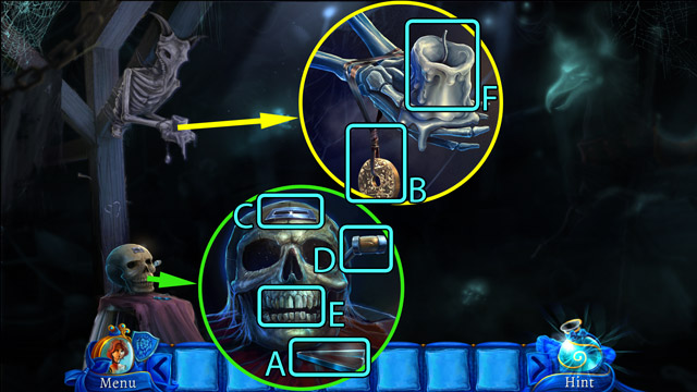 - Put the Gold coin in the slot on the skull's forehead (C).