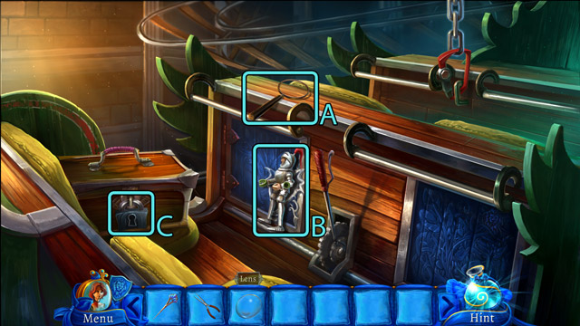 - Pick up the Lensless magnifier (A) and the Puppet knight (B).