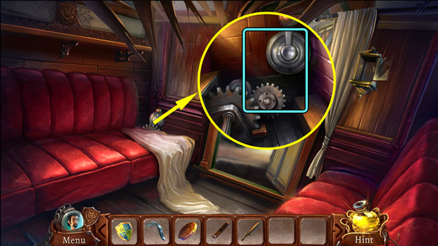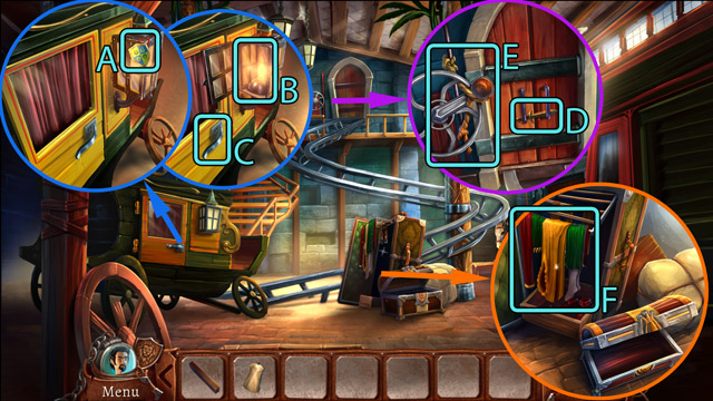 - When the wagon is placed on the tracks, pick up the Lens (D)