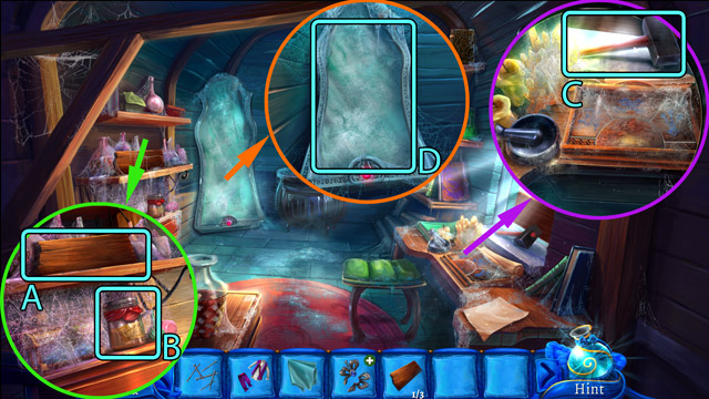 - Add the Hair lock to the cauldron (A).