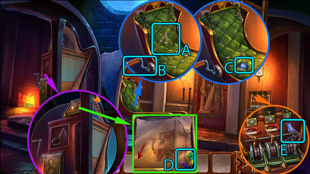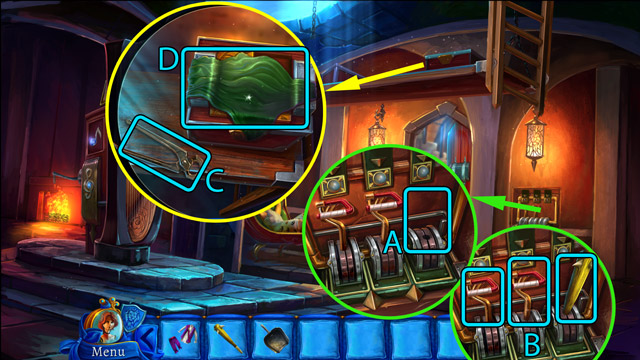 - Pick up the Magic stick (C) and the Symbol (D) from the drawer.