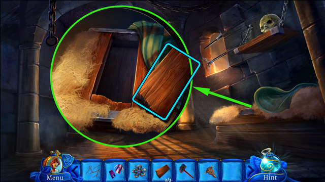 - Move the pillow (C) and then pick up the Blue book under it.