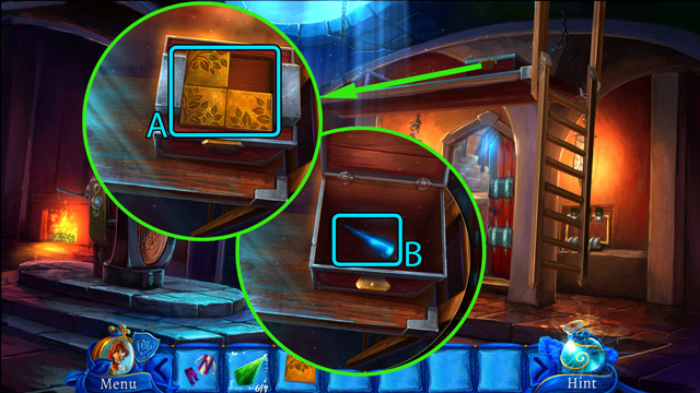 - Using the Paper knife break off the decorations on the door (B). You will get the Ornamental leaf. Also, note the signs engraved in the wood. It hints the proper order of the books on the shelves.